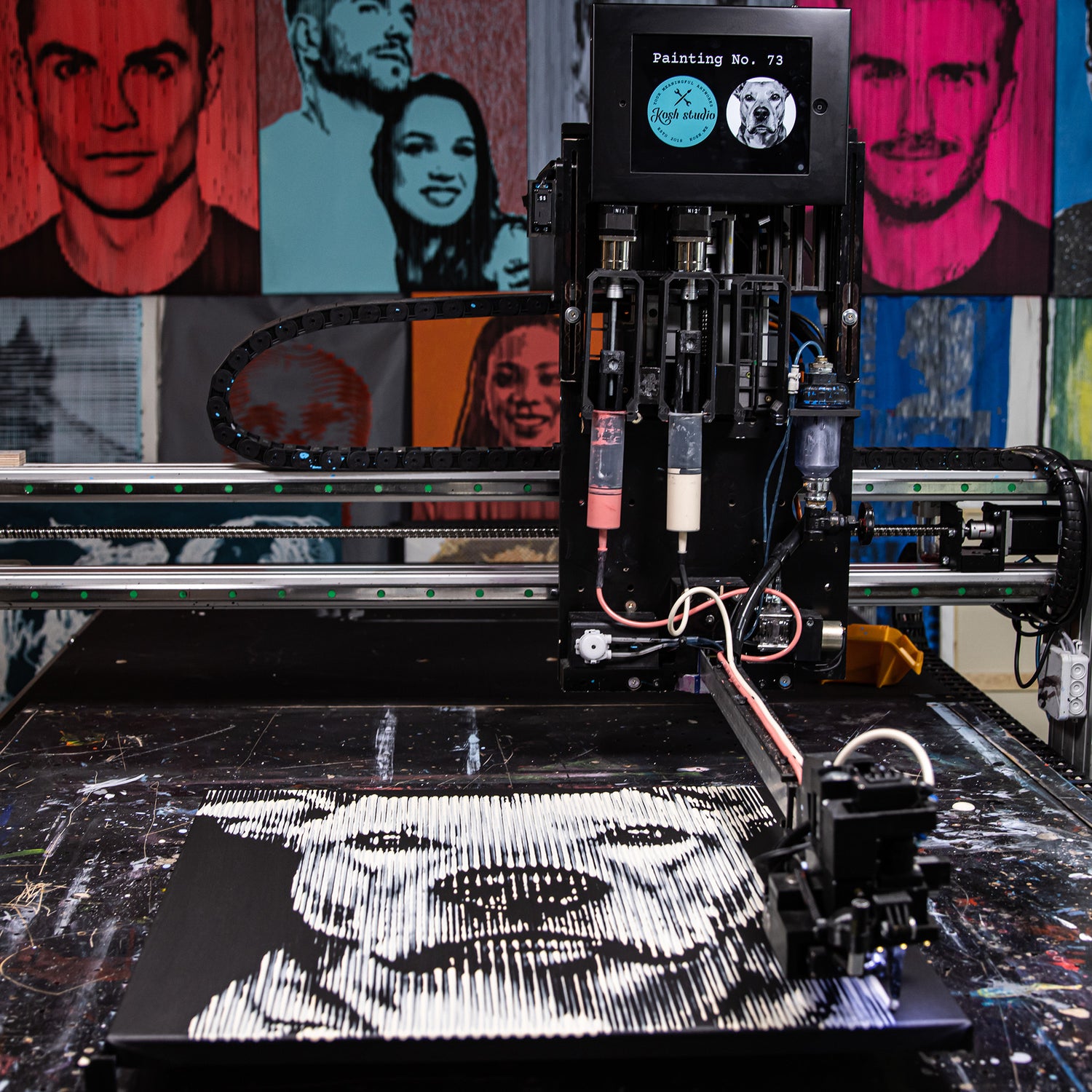 The painting machine is a unique creation that was created by Davids Mitrevics. It is a combination of robotics and classical painting techniques. It uses custom made code and classic acrylic paints, brushes to create painting from your photo.
