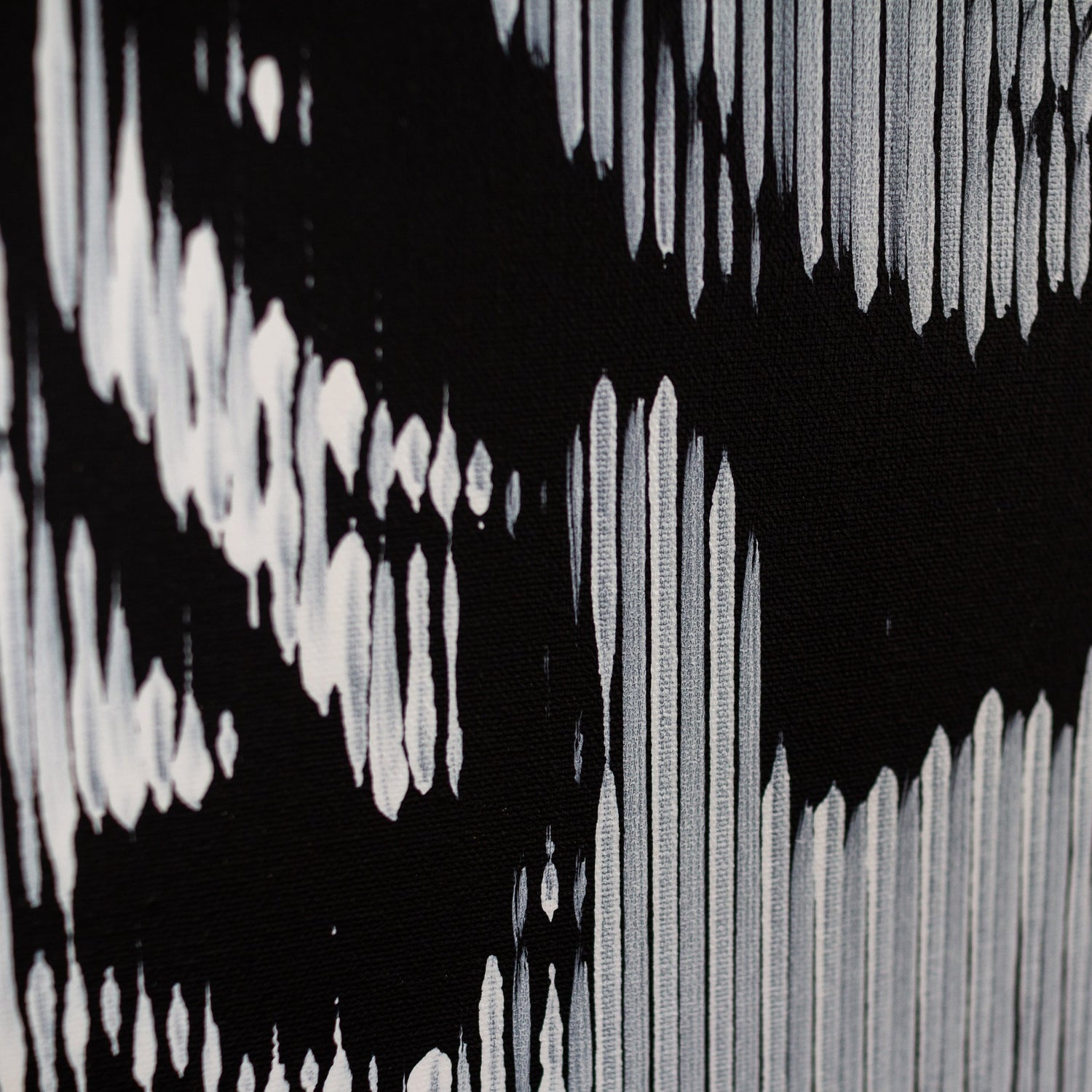 Glezna veidota ar unikālu autora tehniku, izmantojot mehānismus un augstvērtīgu akrila krāsu uz kokvilnas audekla.